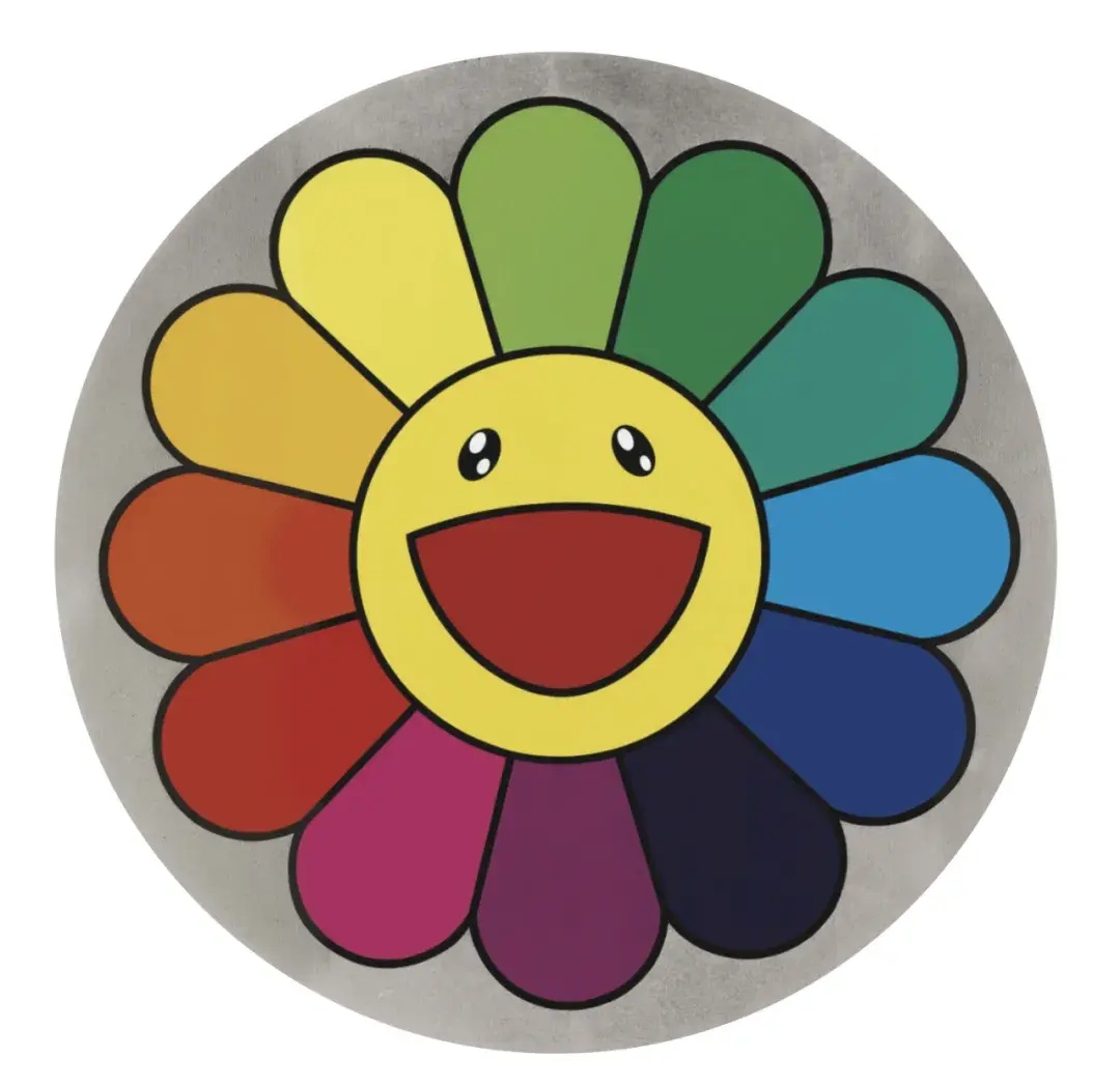 村上隆(日本,1962年),《彩虹花,十一点》,2007年,布面丙烯、白金箔裱于木板,直径40.1cm