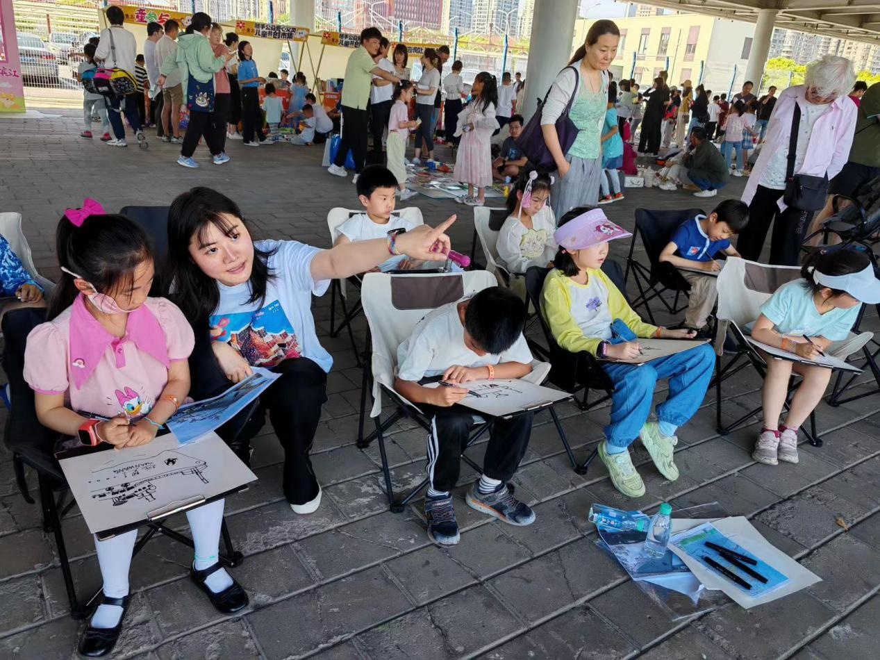 其中,由【Ars est Kids是小艺术家】美学俱乐部承办的“‘远望一号’户外写生”体验活动,吸引了一拨又一拨喜欢动手画画的小朋友的积极参与。除了活动预告时就报名参与的小朋友,现场路过的家长也带着孩子踊跃加入。