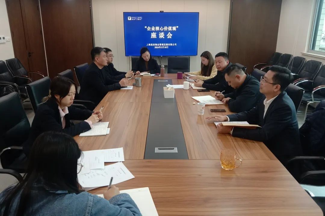 复欣物业认为企业核心价值观应当与贯彻新发展理念、服务黄浦打造功能新高峰品质新标杆以及自身做强做优做大相结合,提出“以人为本,真诚服务,领航发展,匠心筑梦”“创新引领潮流,合作共创未来”等建议词条,并号召职工情牵客户,用真诚服务打动人,展现企业软实力。