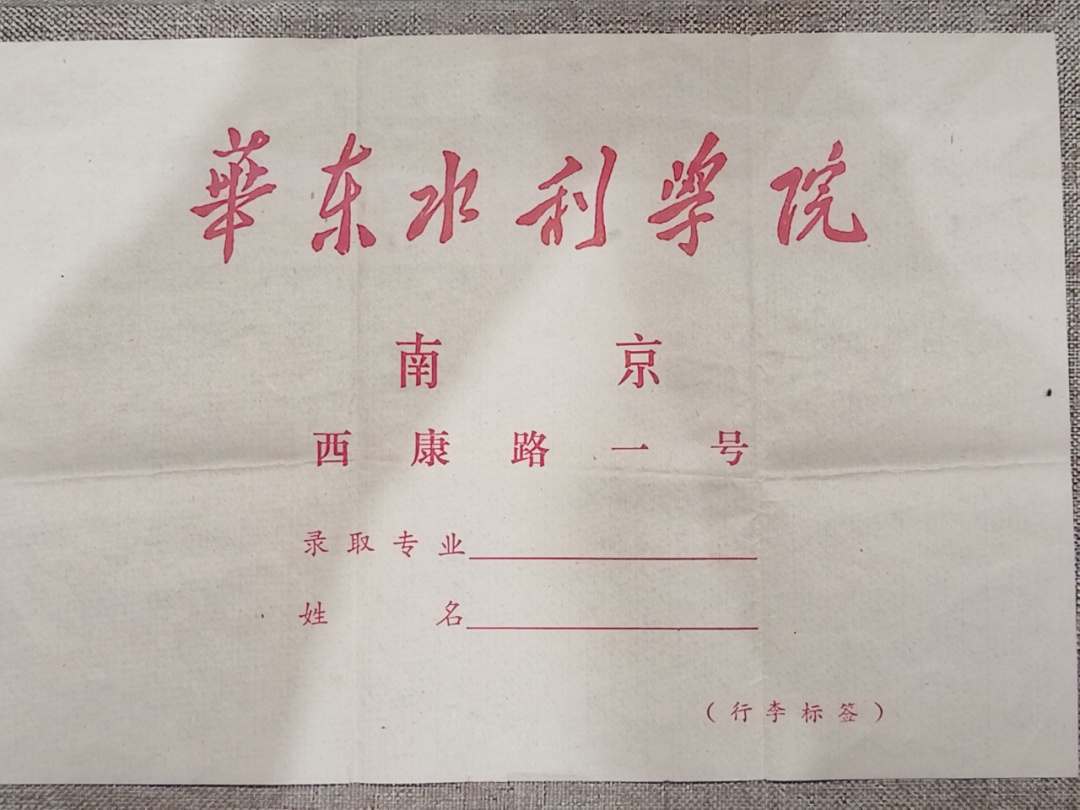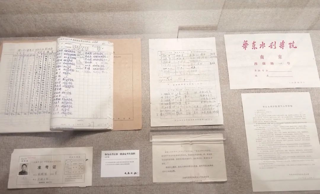 在这张准考证旁边,还摆放着胡德魁被南京市华东水利学院录取的大学通知书、新生入学须知以及“上海市1977年高校招生报名登记表”等资料。