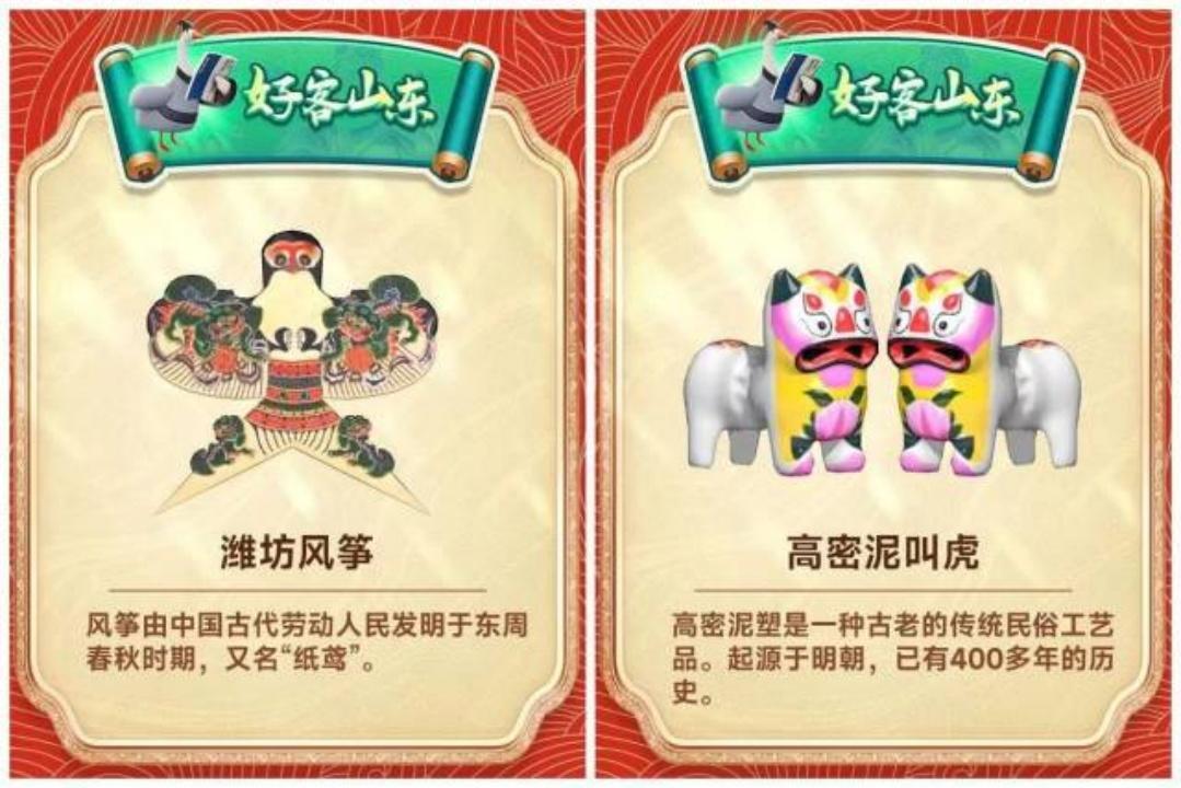 鲁班锁、泰山玉、潍坊风筝、高密泥叫虎、聊斋著作……