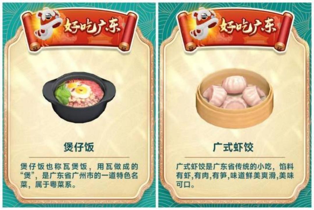 煲仔饭、烧鹅、广式虾饺、双皮奶、菠萝包、叉烧肉、白切鸡……