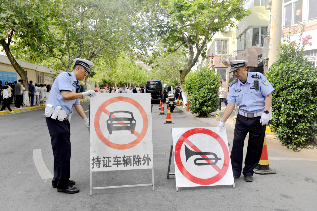 据悉,为确保高考考点周边交通秩序良好,在高考期间,市南交警由大队领导分包考点责任制,带领全体民辅警6点30分准时到岗到位,加强对考点周边、重要路口、易堵路段、考点周边区域交通疏导和管控力度,引导送考车辆“即达即离”,确保每位考生都能安全、准时地参加考试。