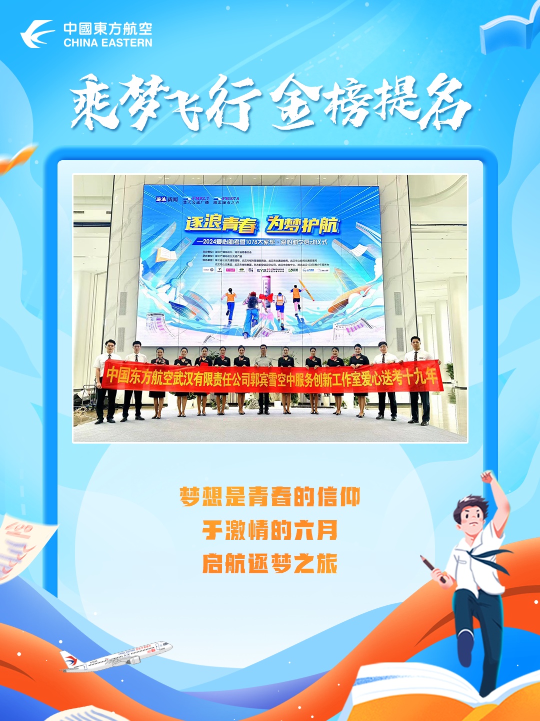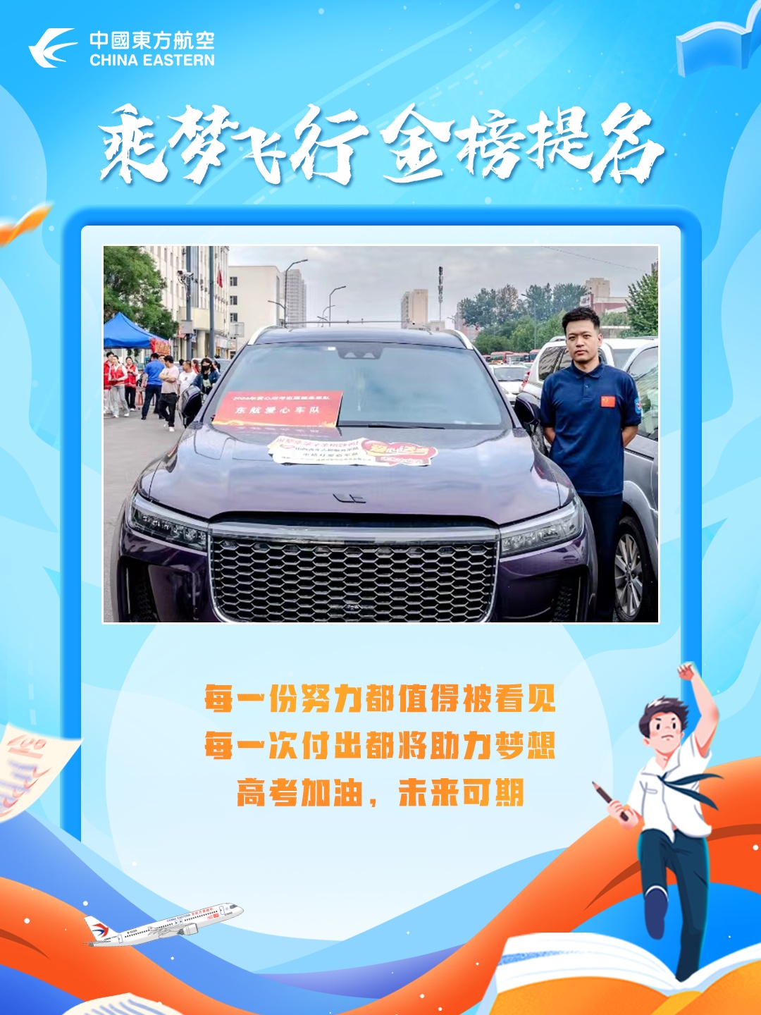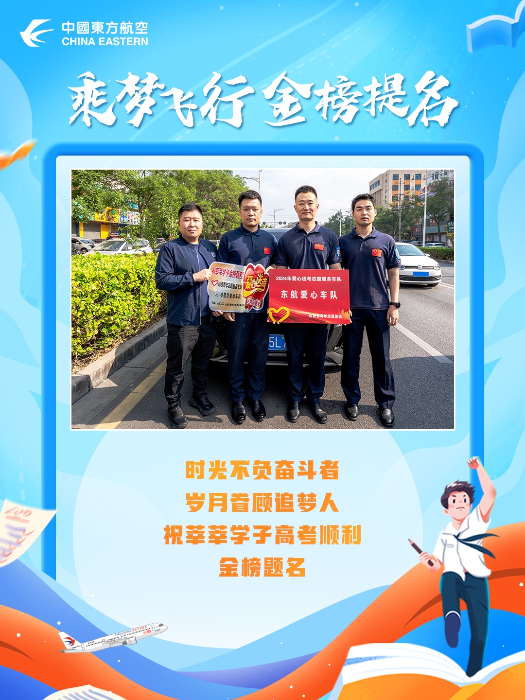 在6月7日这高考的首日,东航人的身影如期而至,为莘莘学子送上祝福与力量,希望通过自己的行动,为这场人生大考助力,为考生们加油打气。高考仍在继续,祝愿所有考生能够首战告捷,一展自己的才华与锋芒!