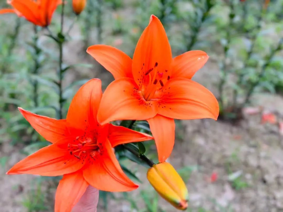 橙色的百合花叫“京橙128”,是一种赏食百合,不仅姿态娇艳美丽,其根茎也可当作药材。