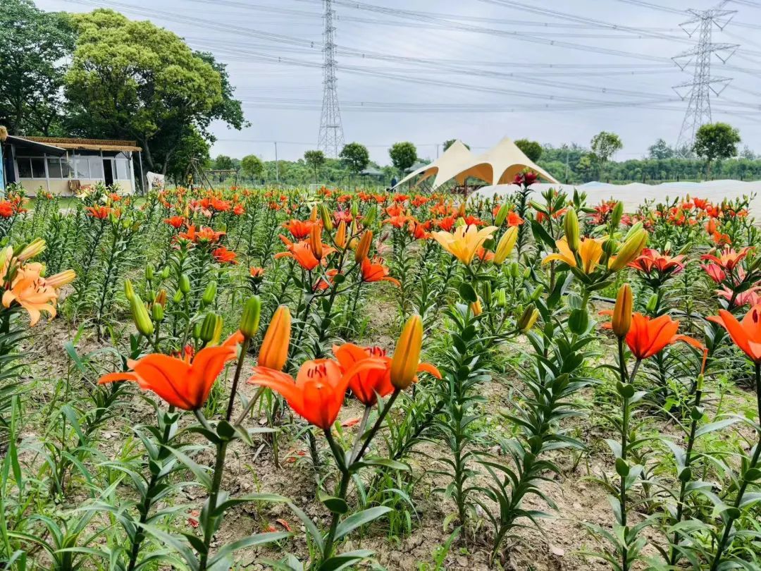 走进小荡村筱狄农场的百合种植地,田野处金光闪耀,映入眼帘的百合花开得蓬勃而娇艳,一朵朵金灿灿的百合把整个露营地装扮得绚丽多姿,一株株含苞待放的百合花沐浴阳光、婀娜摇曳、香气怡人。