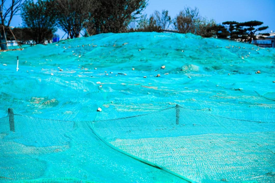 在地面裸露度高的区域,进行密目网全覆盖。密目网具有较高的抑尘率和滤尘率,采用狭长矩形梳状孔,开孔小而密,当气流通过抑尘网时,将湍流、涡流和垂直方向运动的气流转化为微弱、均匀、平直、稳定的气流,降低气流携尘量。单层防风抑尘网抑尘效果可达65~85%,大大提高防风抑尘效果,有效限制了二次扬尘的发生。