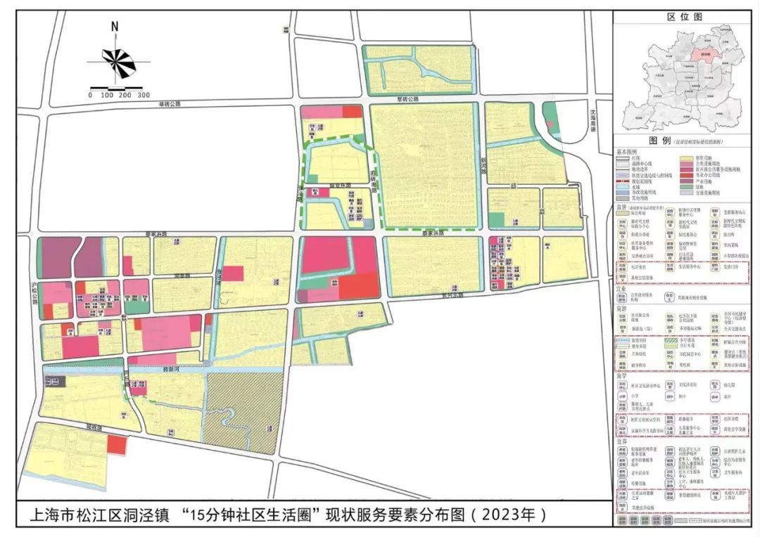本次核心规划范围涉及SJ-dj-2、SJ-dj-3两个位于居住组团的城镇居住生活圈。通过对洞泾镇五类公共服务设施进行实地摸排、走访,精准掌握规划片区各类设施的现状情况,统计现状设施共206项。