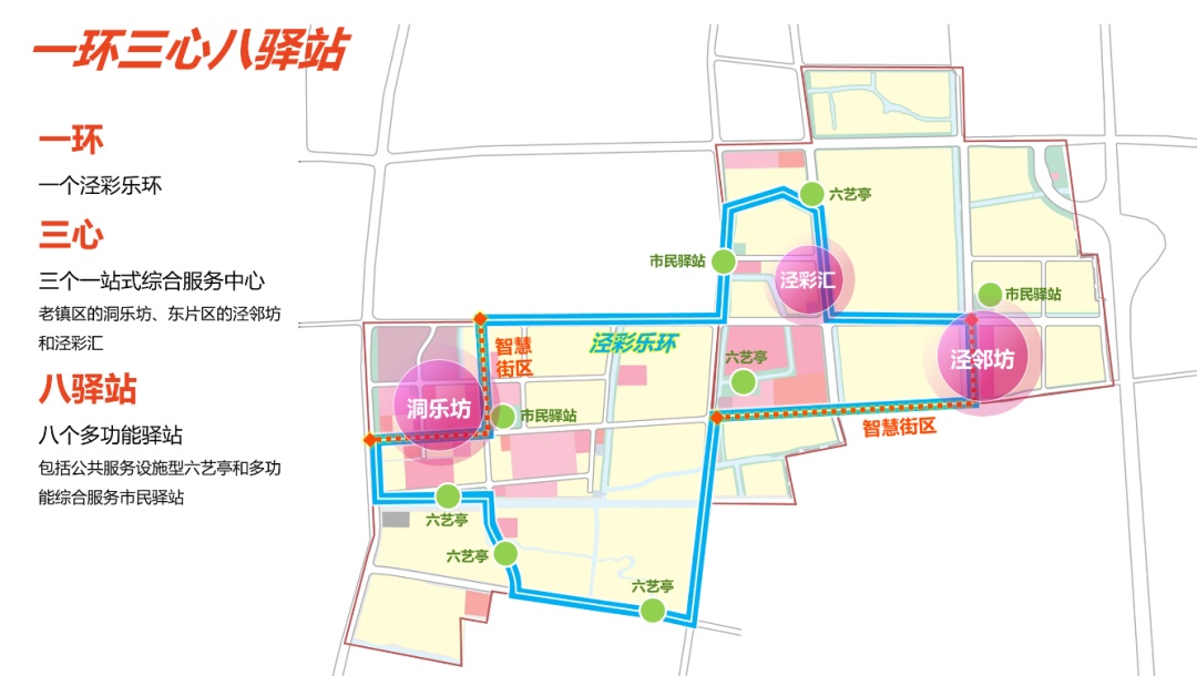 洞泾镇15分钟社区生活圈行动规划围绕三个一站式综合服务中心,布局洞泾特色的1+N空间模式,形成“一环三心八驿站”的规划结构。规划建设的三个一站式综合服务中心,分别为洞乐坊、泾邻坊、泾彩汇。其中洞乐坊——洞泾镇党群服务中心已完成改造升级,5月起启动试运营!