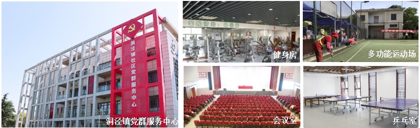 拥有四层的洞泾镇社区党群服务中心在功能设置上,一层包括公共阅读空间、自习室、24小时市民自助服务区、便民人人屋等便民服务空间。二层有排练厅、童心乐园、茶艺室、乒乓室、悦耳洞听室等文娱休闲空间。三层、四层设置各类功能教室、会议室,以及辅楼有健身房、剧场,室外另设有篮球场、门球场。秉承“开放、融合、共享“的理念,通过多功能空间打造,引入全年龄段人群喜爱的文化活动,丰富创新活动内容和形式,吸引亲子家庭、一老一小和社区能人等人群积极参与,使党群中心真正成为居民愿意来、方便来、喜欢来的“打卡地”!