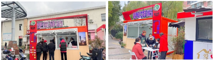 将闲置的核酸亭改造成为多功能复合的小型便民驿站,即为六艺亭。在原有核酸检测亭基础上合理合规改造,达到平疫结合,功能随时切换,实现核酸检测屋价值实现最大化。当前洞泾的街头已经改造完成5个便民驿站,服务功能包括免费提供加热食物、热水供应、充电、轮椅拐杖租借、血压自测等便民服务。