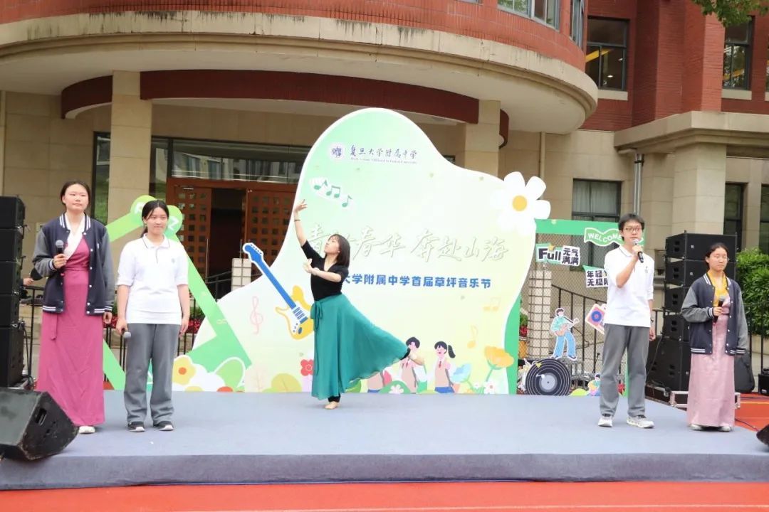 日前,“青衿春华,奔赴山海”复旦大学附属中学首届草坪音乐节举行。舞台表演、主题游园,响彻操场上空的歌声,为全校师生呈现了一场精彩的视听盛宴。主舞台上,同学们演绎一段段经典旋律,他们以独特的嗓音、精湛的技巧、丰富的情感,激情有力地诠释对音乐、青春的理解。