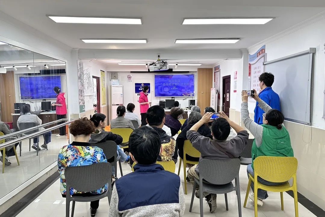 在武康片区,老师授课生动详实、深入浅出,参与“老吾老计划”家庭照护能力课堂培训的居民们纷纷表示受益匪浅,现场氛围十分活跃。老师将专业科学的内容通过各种生动形象以及可操作性的形式向居民们呈现,居民们有的用手机拍照记录,有的认真地做了学习笔记。