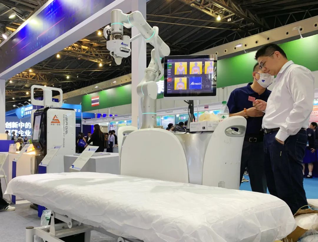 值得一提的,上海非夕机器人科技有限公司的中医理疗机器人小拂首次在展会上亮相,引起了观展者的极大兴趣。它可对人体姿态及局部位置进行实时识别,自动匹配脊柱位置及相关穴位,模拟人手按推、指揉脊柱附近及腰部等区域的软组织。