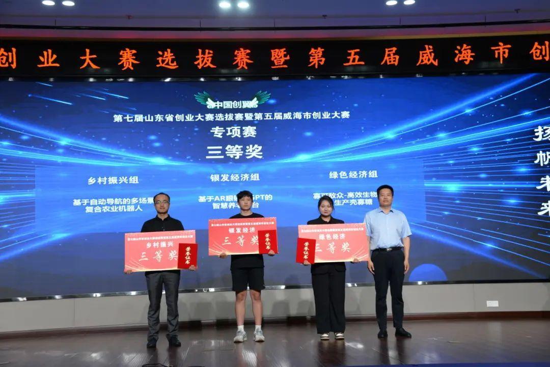 各位选手路演竞赛结束后,威海市人民政府副秘书长孔军,市委组织部副部长,市人社局党组书记、局长马绪福,主办部门分管领导分别为获奖团队颁奖。大赛结束后,各赛道优秀创业项目将同步推荐参加第七届山东省创业大赛,对于晋级省赛、国赛的威海市选手,威海市组委会的创业导师将对项目进行持续跟踪辅导。