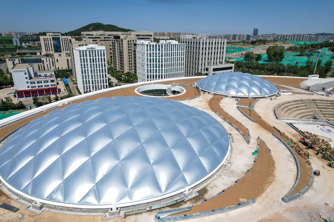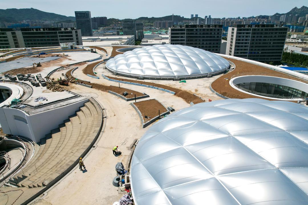 外形酷似飞碟、建成后将成为集VR体验、展示发布、公共服务等于一体的虚拟现实文商旅综合体全国样板……6月17日,位于崂山区的青岛虚拟现实创享中心的两个穹顶已安装完毕,项目进入竣工冲刺阶段。