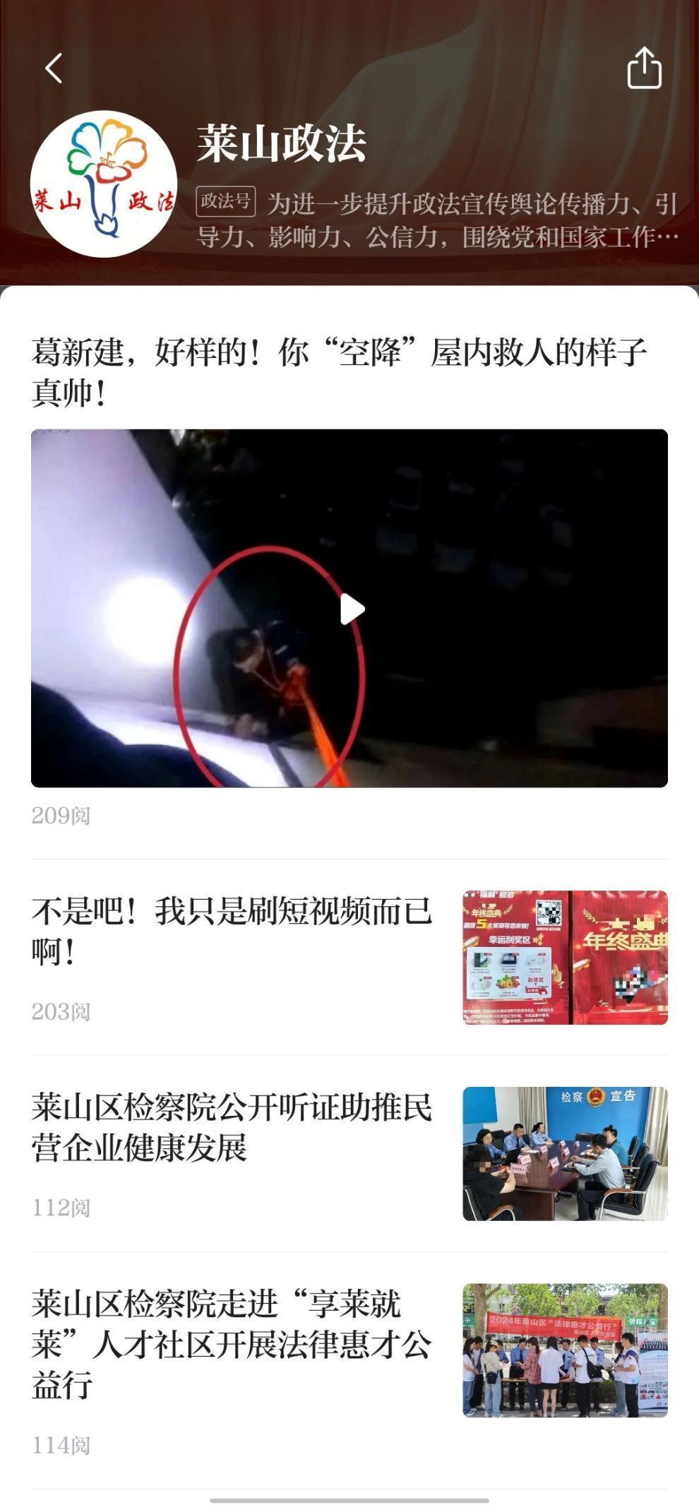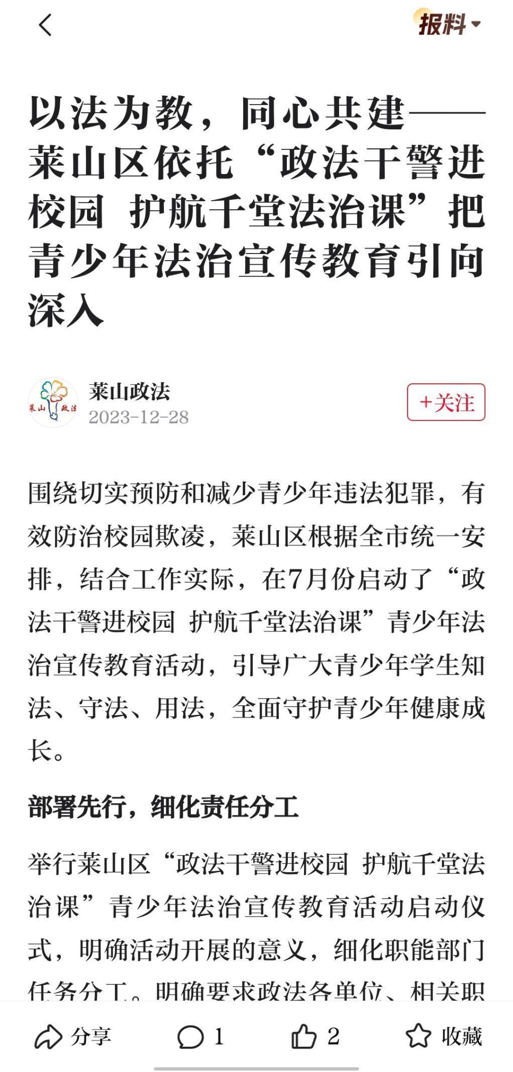 “莱山政法”大众号内容截图