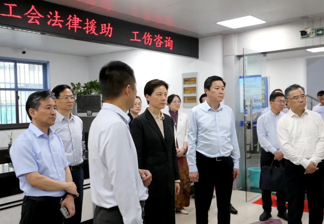 6月19日,上海市总工会党组书记、副主席沈军和市总工会一级巡视员周奇一行赴嘉定区调研。区委书记陆方舟,区委常委、组织部部长姚卫华,区人大常委会副主任、区总工会主席陆强等陪同调研。