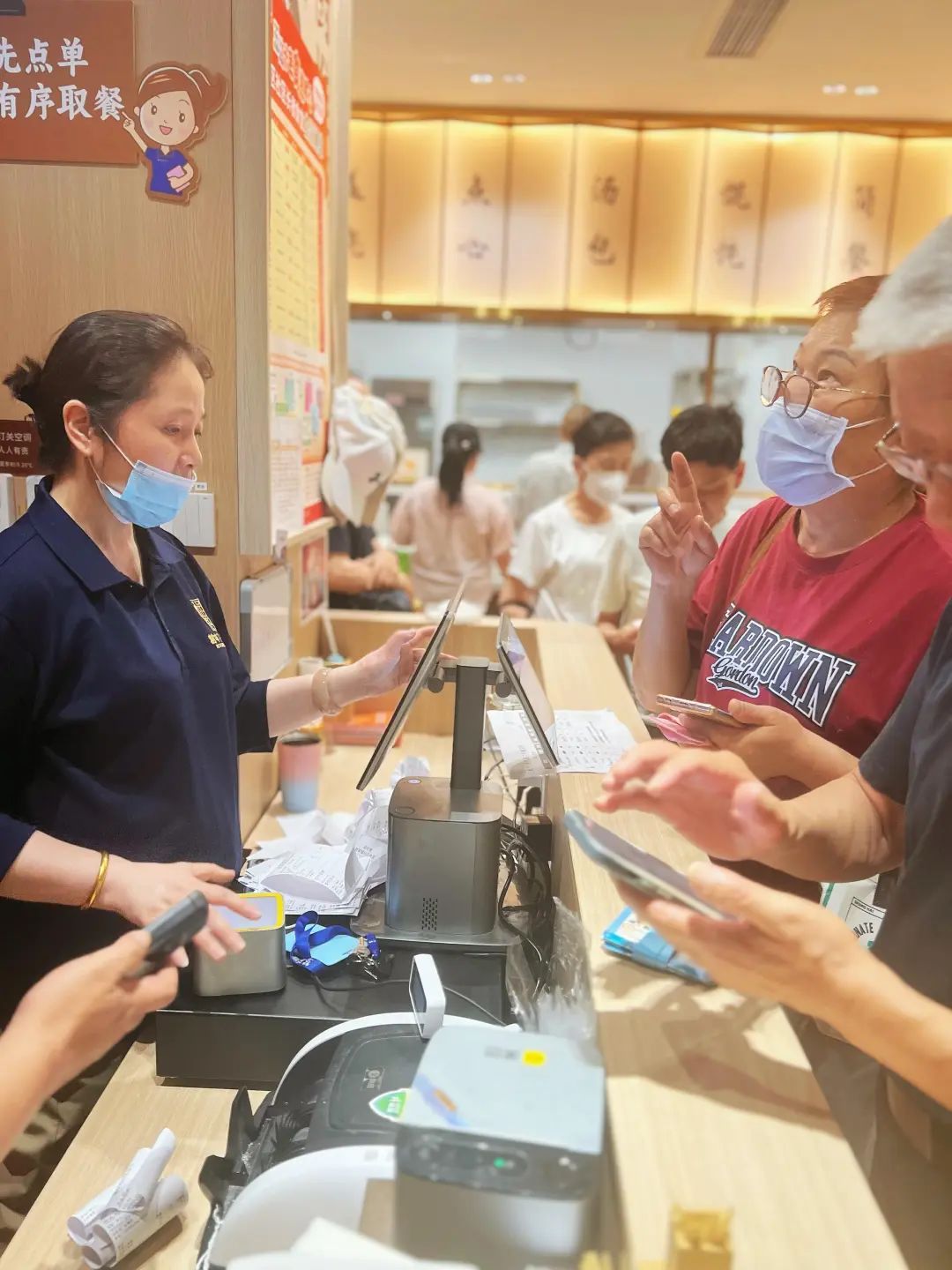 用时下流行的一个词语形容即是:拉满,没错,福荟社区长者食堂把对老年人的人性化服务“拉满”。这不,食堂收银处的工作人员不耐其烦地“唱票”,一遍又一遍地确认老年食客点的菜肴和价格,在外人看来很细微的一些地方,却是老年人深爱这里的原因。