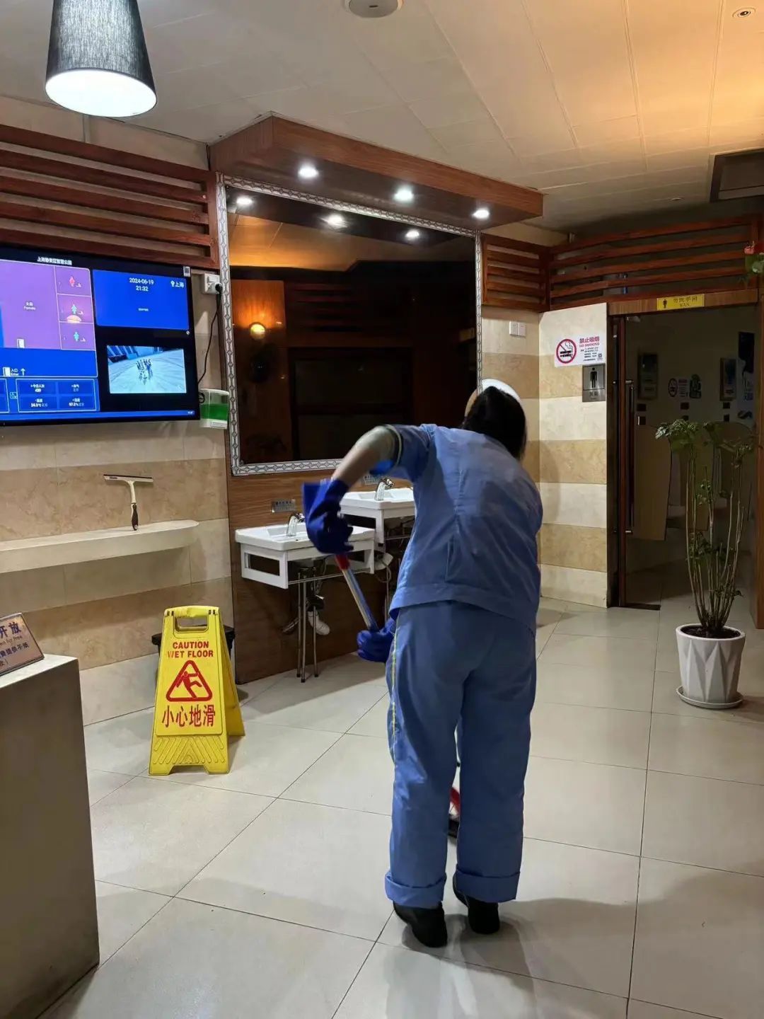 例如,位于西康路326号的环卫公厕,临近静安区中心医院,周边沿街餐饮较多,夜间人流量大,因而采取夜间值守的管理方式。