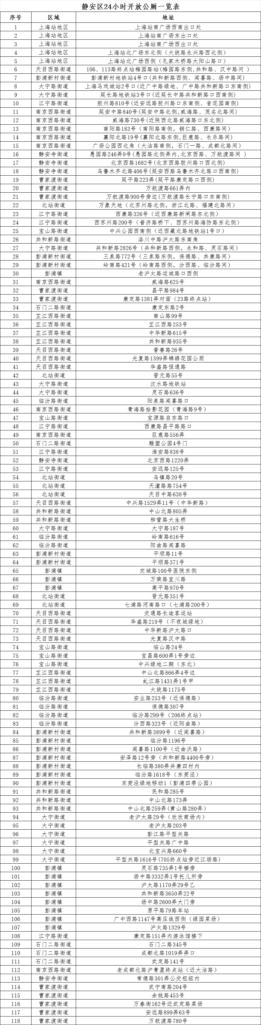 静安区24小时环卫公厕一览