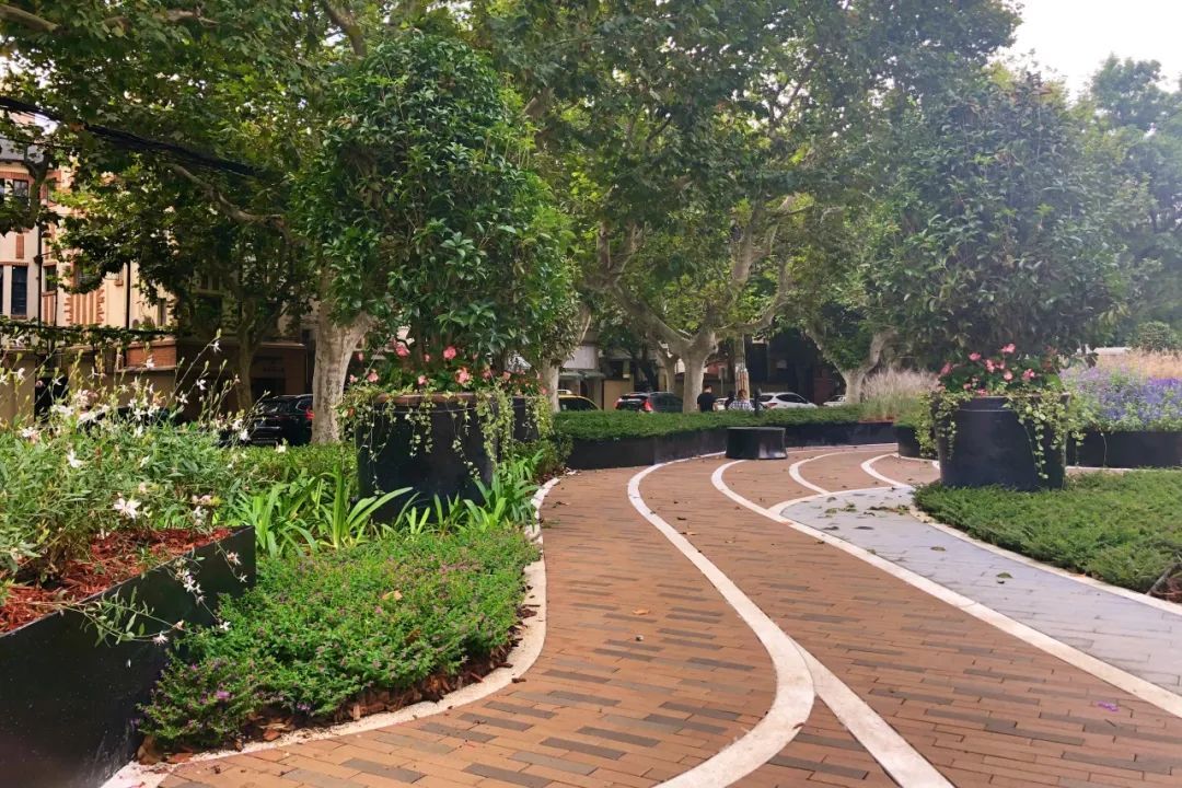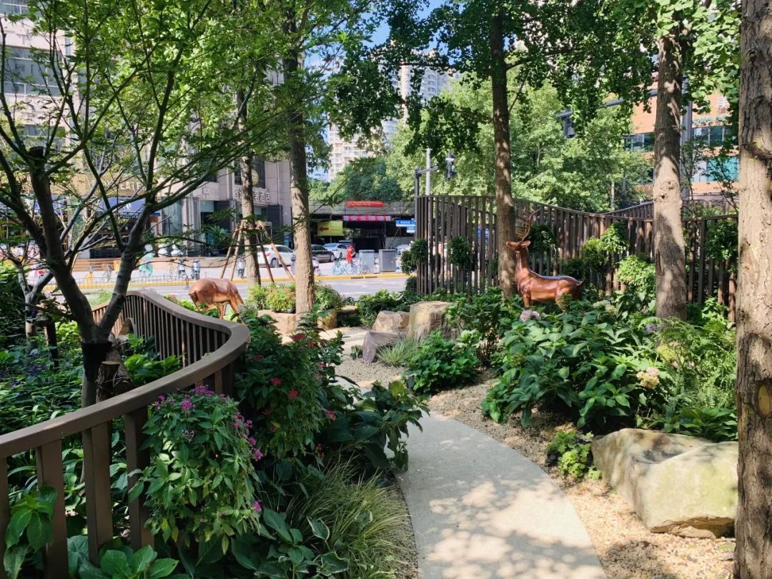保留现状大乔木,增加树池座椅,供游人短暂休憩、观景;增加开花植物和花境组团,打破现状单一沉闷的植物空间,焕化为映衬街巷烟火气的特色小花园。