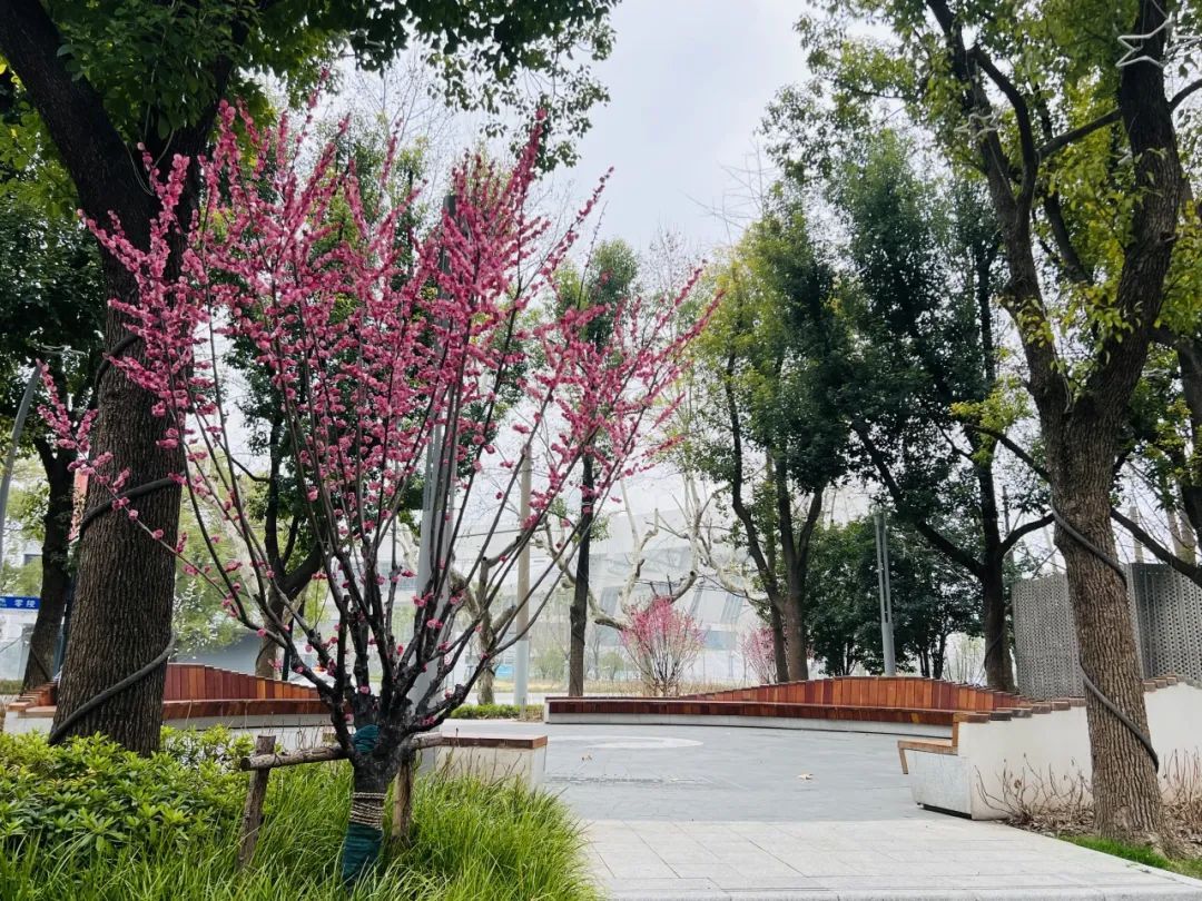 保留原有上层乔木,中层增加梅花,象征不屈不挠、坚韧不拔的奥运体育精神。中心活动场地增加地面雕刻,讲述徐汇区零陵路的历史变迁,使口袋公园更具文化气息。