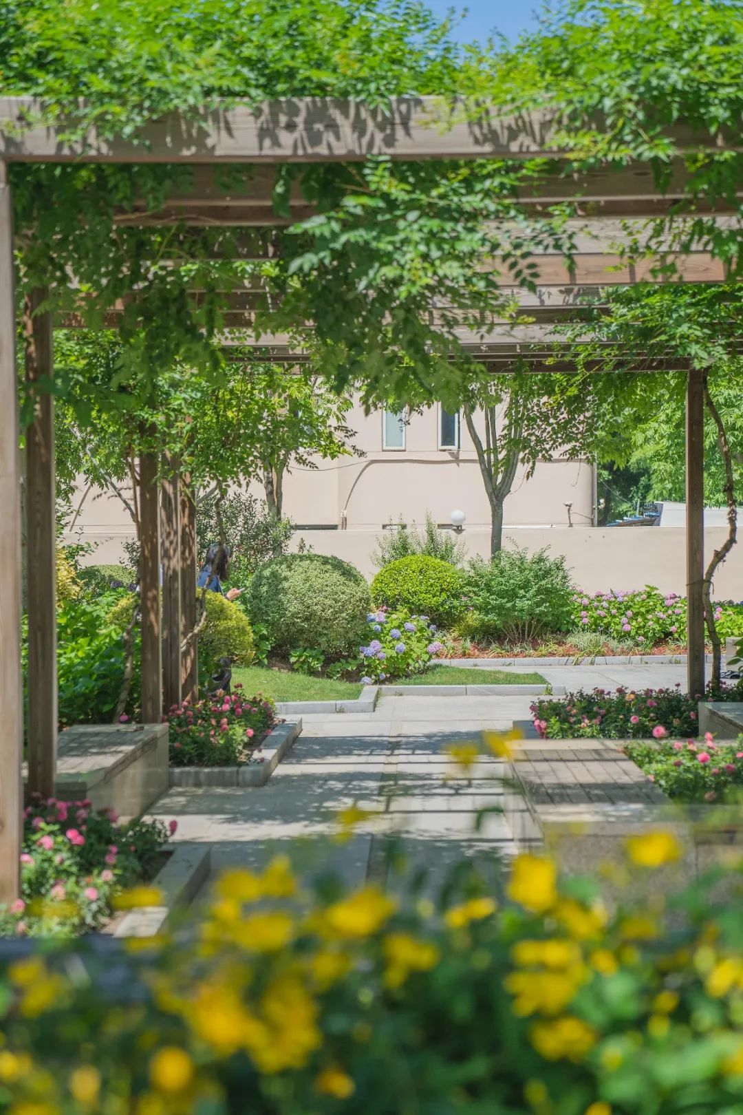以“流动的音符”为启发,串联空间场地,增强人文互动和体验感,打造生活街区里的文化生态空间。打破郁闭的临街界面,营造开敞舒适的广场空间。植物配置上以5个主要植物品种形成五线谱构图,结合通道的5个造型花坛,体现层次丰富的植物群落变化。