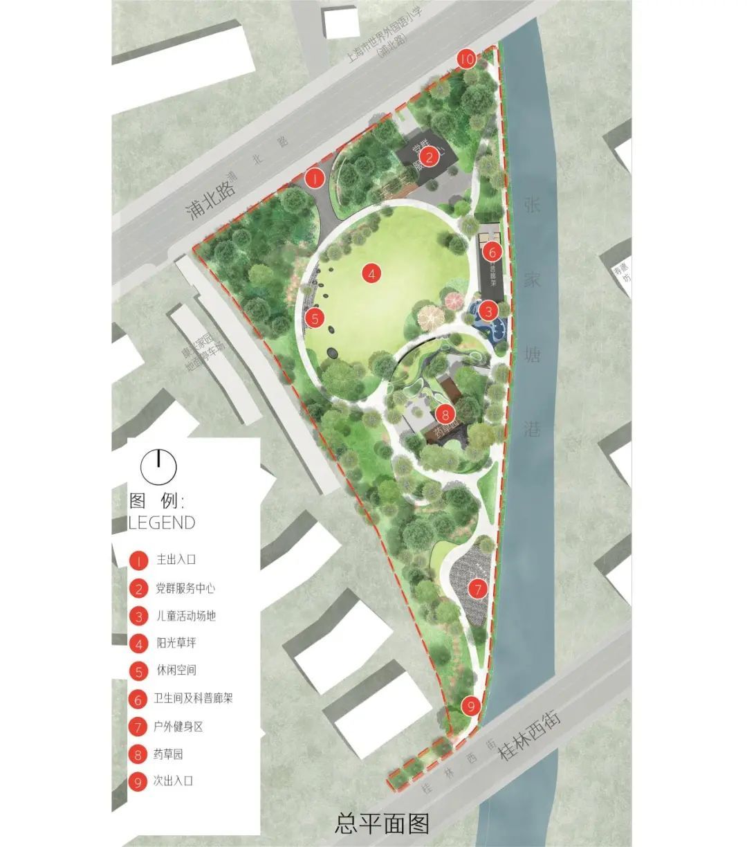 设计以河流形态为基调,贯穿整个绿地,在场地现有基础条件下进行植物提升,增加夏花秋色比例,突出冬景效果,彩化季节性效果,提高绿地开放共享度和城景人融合度,打造可阅读、可漫步、可思考的口袋花园。