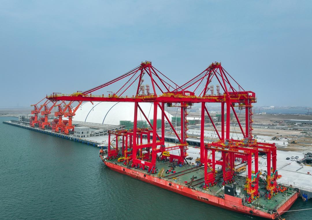 6月24日,东营港集装箱码头项目2台岸桥成功完成上岸安装,标志着黄河三角洲首个集装箱专用码头工程海上施工结束。