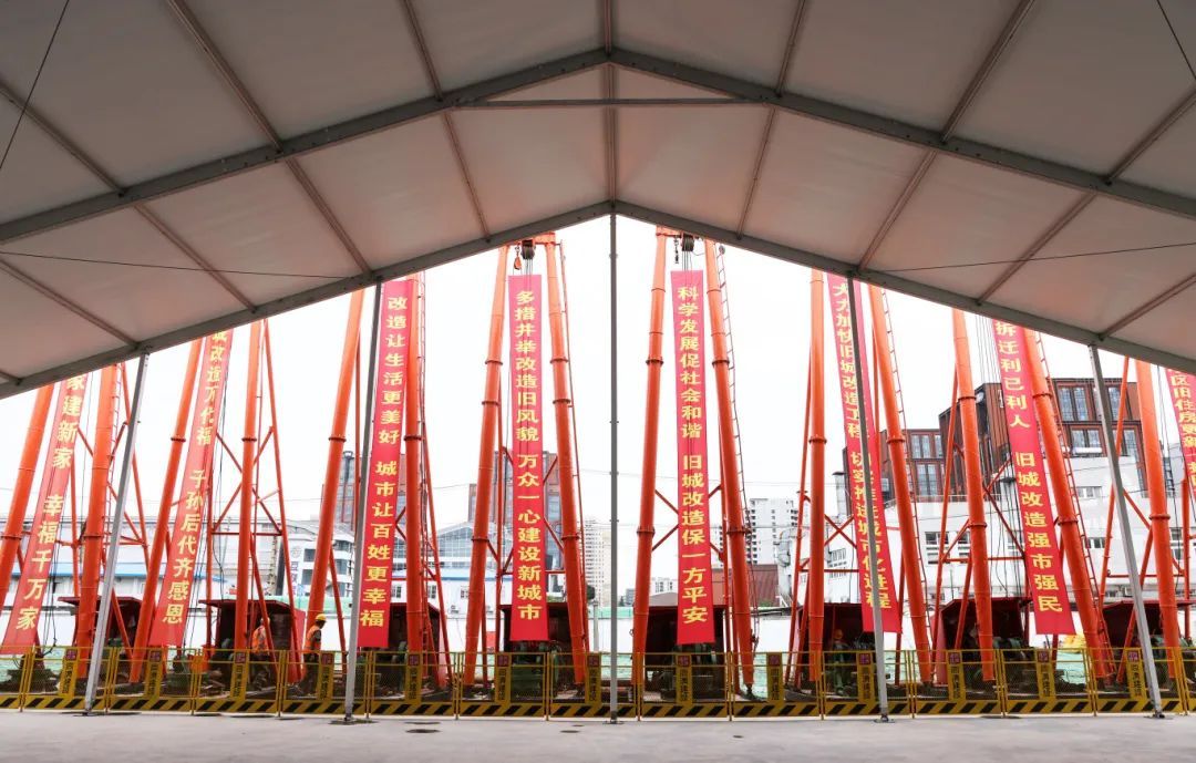 仪式现场,随着薛侃、王桢、周海鹰、高世昀共同启动推杆,欢庆的音乐响起,彩色礼花竞相绽放,桩机、挖机轰鸣声互相交织,居民们的喜悦之情溢于言表。