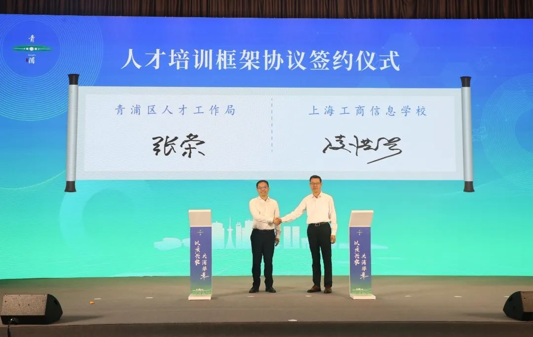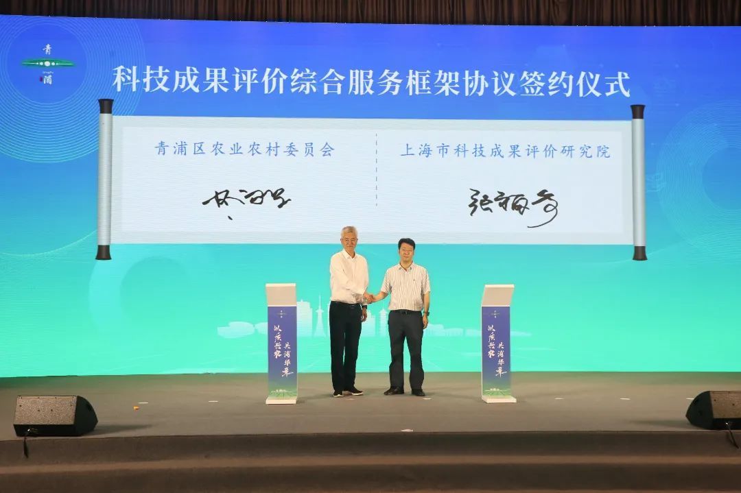 青浦区人才局现场与上海工商信息学校签署了人才培训框架协议;上海市科技成果评价研究院现场与青浦区农业农村委现场签署了科技成果评价综合服务框架协议签约。