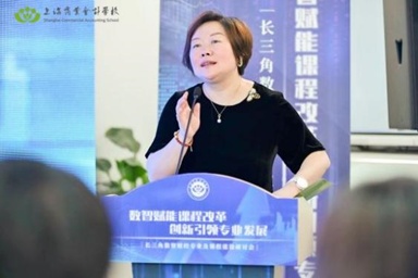 “数智”之力是如何作用于财经专业的?会议伊始,上海商业会计学校书记陈震与副校长杨菁从“支撑力”与“驱动力”两个角度进行了介绍。在陈震看来,数智化改革促进了教与学方式的转变,推动了教育理念的更新、模式的变革和体系的重构,是职业教育改革和高质量发展的重要“支撑力”。“当前,数字驱动产业变革快速前行,财经专业人才的新岗位、新需求大量产生,数智人才培养迫在眉睫。”杨菁则介绍了产业变革对数智人才培养的“驱动力”。在两种力的共同作用下,长三角各所职校立足区域经济发展特色,紧随产业行业发展动态,全面布局顶层设计,探索数智赋能专业建设路径,交出了一份份兼具共性且各显特色的“数智+”育人答卷。