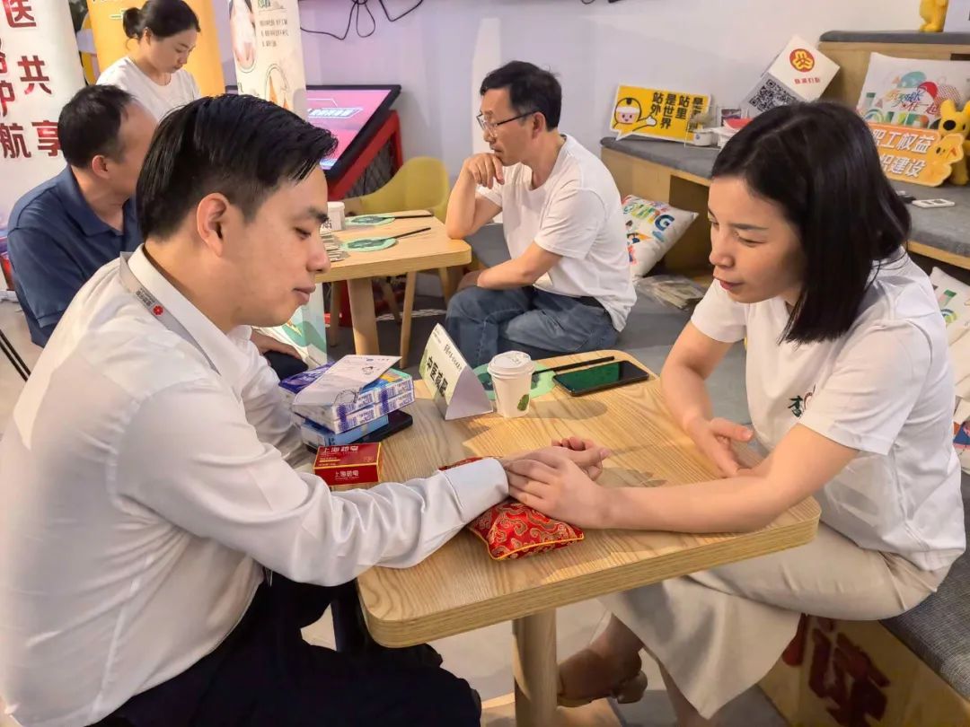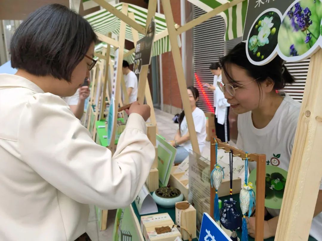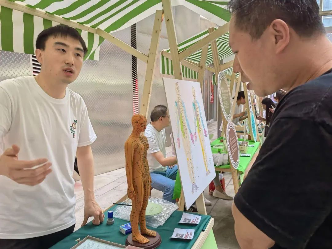 杨浦区中医医院的杏林心志愿服务队针对园区白领人群的特点,设计了生动有趣的中医特色服务。在健康市集上,参与市民们可以从食养、香养、身养、膏养、茶养中领略中医养生的奥妙。在健康体验中,结合白领们需求,设置了冬病夏治、减肥咨询、中医特质辨识、推拿体验、中药贴画体验等特色体验。
