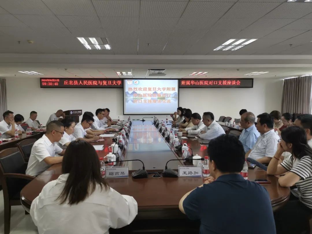 上海医学院、华山医院、丘北县人民医院领导及相关职能部门负责人与华山医院第15批援滇医疗队8位队员汇聚一堂,交流帮扶成果、畅聊帮扶计划。
