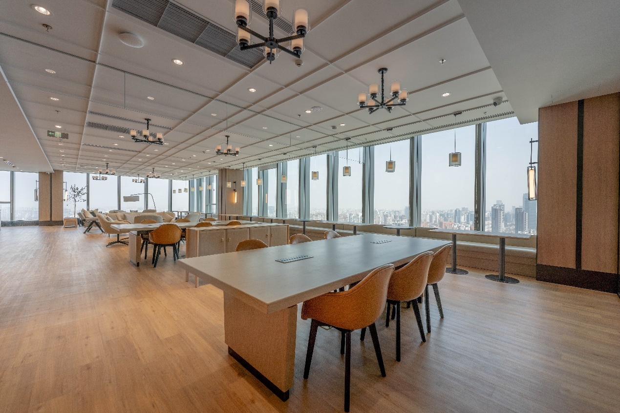 丽丰天际会客厅占地2000平方米,集多功能大型活动区、多规模智能化会议室、播客室、中式茶室、睡眠仓、图书馆、白领休闲区等多元空间于一体。