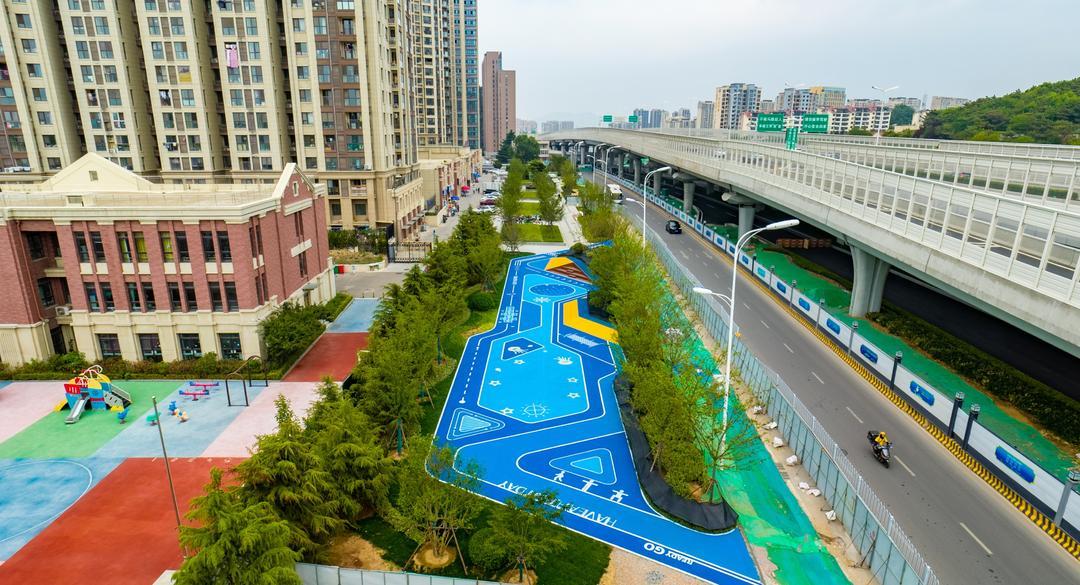 目前,桥下中分带绿廊除桥梁施工区域外已全部完成栽植,大量选用了乡土特色的高抗性植物,如胶东卫矛、麦冬等,在提升生态韧性的同时,起到过滤空气粉尘、噪音的效果。荣昌路、德丰路、楼山路等12处景观节点基本完成建设,广泛选用了青岛市花月季及其他特色植物,结合榉树、娜塔栎等庭荫树栽植,并融入了城市文脉和休闲健身等文化、功能属性,建设了以重庆路文化为特色的城市口袋公园。据青岛城发城市更新有限公司规划设计部负责人沈敬林介绍,针对绿化施工工作面狭长、分散以及各专业施工交叉等特点,青岛城发集团积极统筹各区域交叉同步施工,针对夏季高温与绿化施工特点,积极采取湿法作业、路沿石收边倒栽等措施,有效提升苗木成活率和美观效果,打造高品质城市绿地空间。