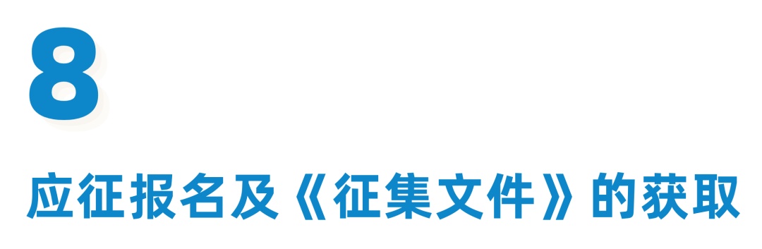 应征报名 有意向参加本次征集的潜在应征人,应在本公告第5条规定的报名时间内,登录上海国际招标有限公司网站(www.shabidding.com,下称“上海国际招标网站”)的对应项目公告页在线领取《征集文件》、报名表等资料。潜在应征人首次使用上海国际招标有限公司网站需要完成注册程序;已注册的潜在应征人可使用已有的供应商登录名和密码登录并下载相关资料。 潜在应征人须点击公告页面右上角“报名”按钮,上传报名表后点击“提交”。征集代理审核后,将通过上海国际招标网站通知该潜在应征人报名是否成功。若为团队形式应征,团队任一成员完成报名程序即可。 获取设计基础资料 潜在应征人报名成功后,可在公告页的“采购文件”一栏中领取相关的设计基础资料。 提问及答疑 潜在应征人如对《征集文件》有疑问,应在本公告第5条规定的截止时间前将提问表发送至邮箱maoyeqi@shabidding.com。答复的内容将以答疑文件的形式通过上海国际招标网站向应征人定向发布,请应征联系人注意上海国际招标网站通知。 主办单位将酌情以书面形式对收到的问题予以答复,上述答复将不标明提问的来源。主办单位发出的答疑文件与原征集文件具有同等效力,如与原征集文件的内容不一致时,以日期在后者为准。
