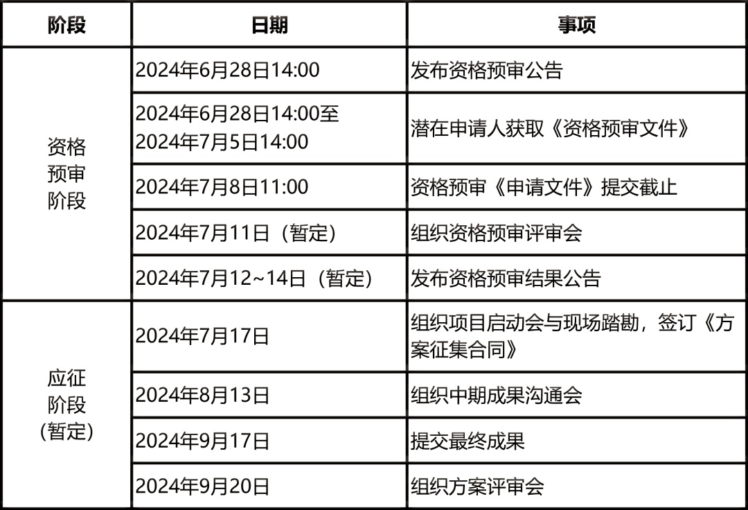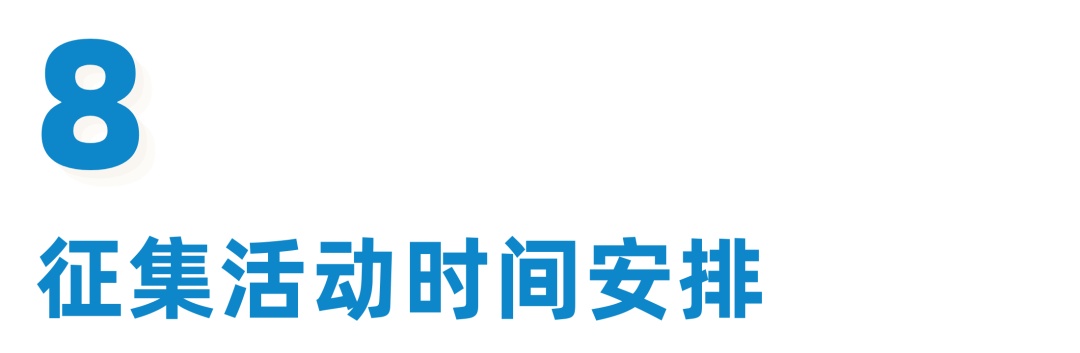本次高校征集活动时间安排如下(所有时间均为中华人民共和国北京时间,下同): 征集活动期间请各应征人随时关注发布征集公告的网站,及时了解最新消息。