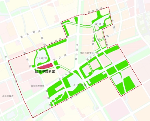 汇龙湖社区——金山区图书馆新馆建筑概念方案设计征集(国际高校组)由滨海地区开发建设领导小组办公室、区规划和自然资源局以及区文化和旅游局指导,金山新城区建设发展有限公司主办,各方作为征集人共同委托上海国际招标有限公司担任征集代理,向境内外高校师生团队公开征集汇龙湖社区——金山区图书馆新馆及周边建筑概念设计方案,打造最具活力的未来社区生活示范新样板! 金山区位于上海西南部,历史悠久,文化繁荣。“十四五”期间为重点发展南部滨海地区,打造“上海湾区”城市品牌,加快落实上海市“南北转型”战略要求,金山区对标国际一流大都市的发展水平,对应市民群众对更高品质美好生活的需求,计划进一步提升整体公共服务能级,于汇龙湖高品质社区建设金山区图书馆新馆等公共服务设施。 图1 汇龙湖高品质社区范围图