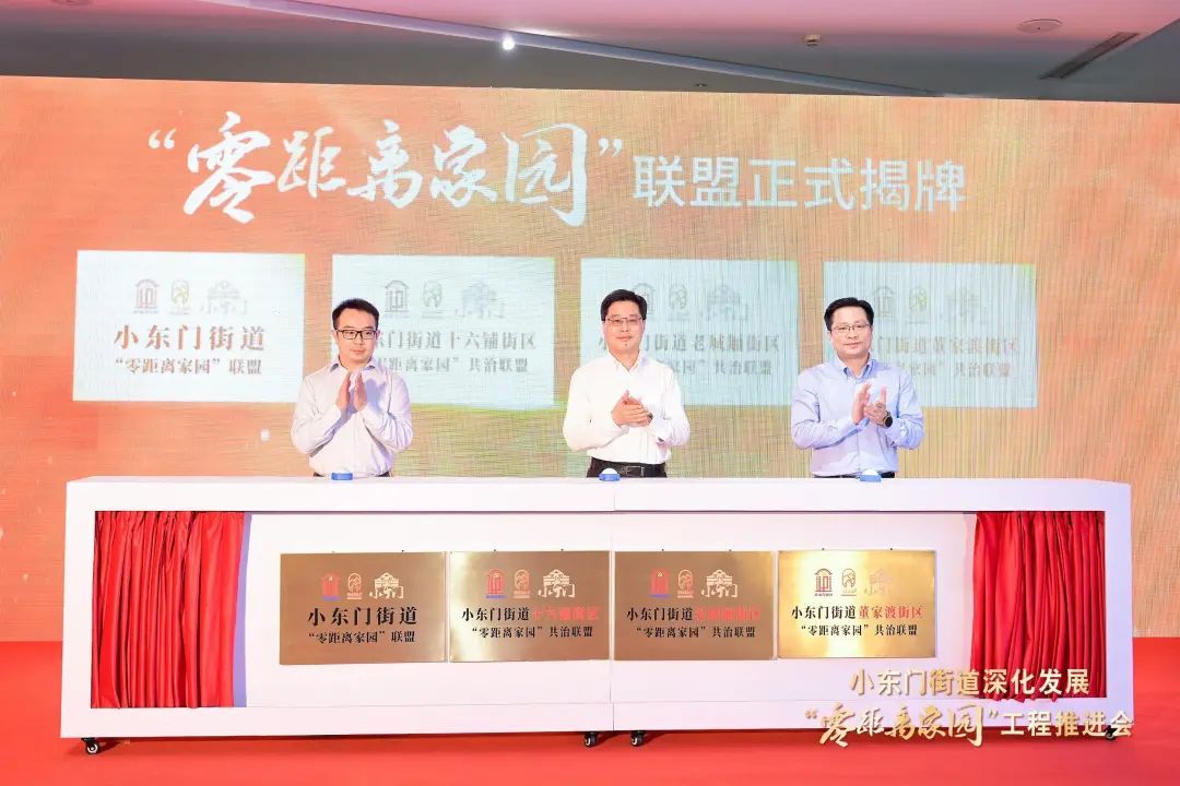 王槐等为小东门街道“零距离家园”联盟、街区“零距离家园”共治联盟揭牌。