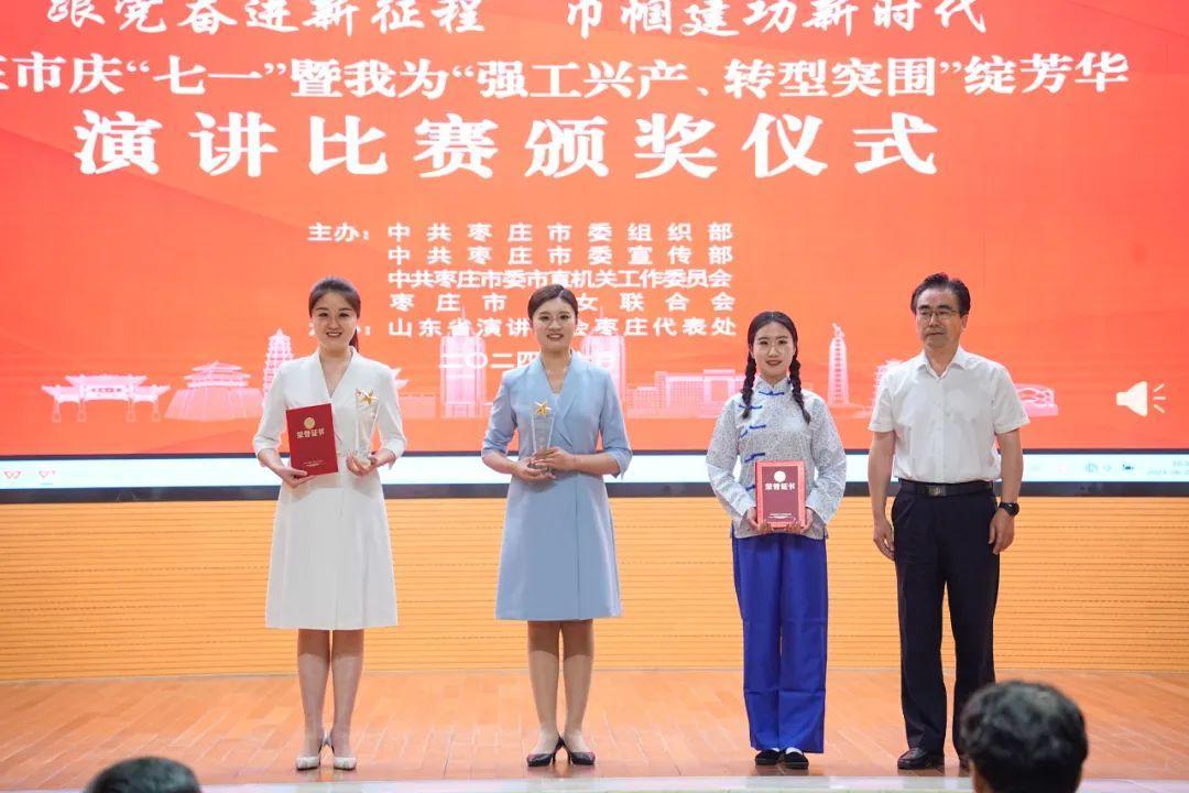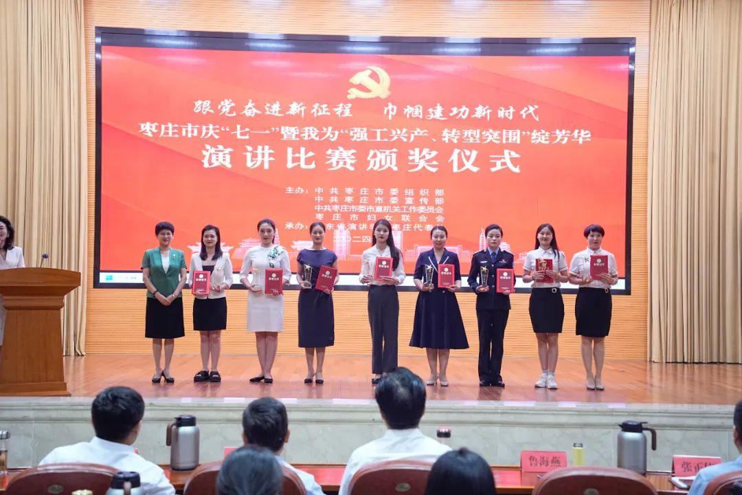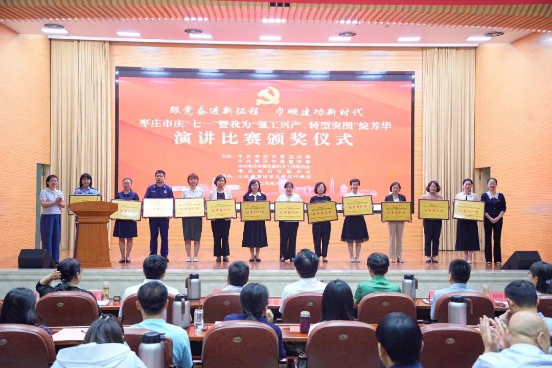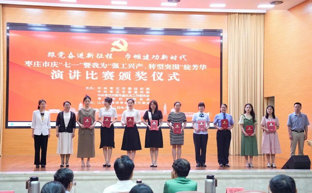 为庆祝中国共产党成立103周年,团结引领枣庄市广大妇女“跟党奋进新征程 巾帼建功新时代”,聚焦“重点项目落地见效年”,聚力“强工兴产、转型突围”,为工业倍增计划实施贡献巾帼智慧力量,展现巾帼不让须眉风采,6月28日上午,由枣庄市委组织部、市委宣传部、市委市直机关工委、市妇联主办,山东省演讲学会枣庄代表处承办的枣庄市庆“七一”暨我为“强工兴产、转型突围”绽芳华演讲比赛在市政大厦二楼报告厅举行。