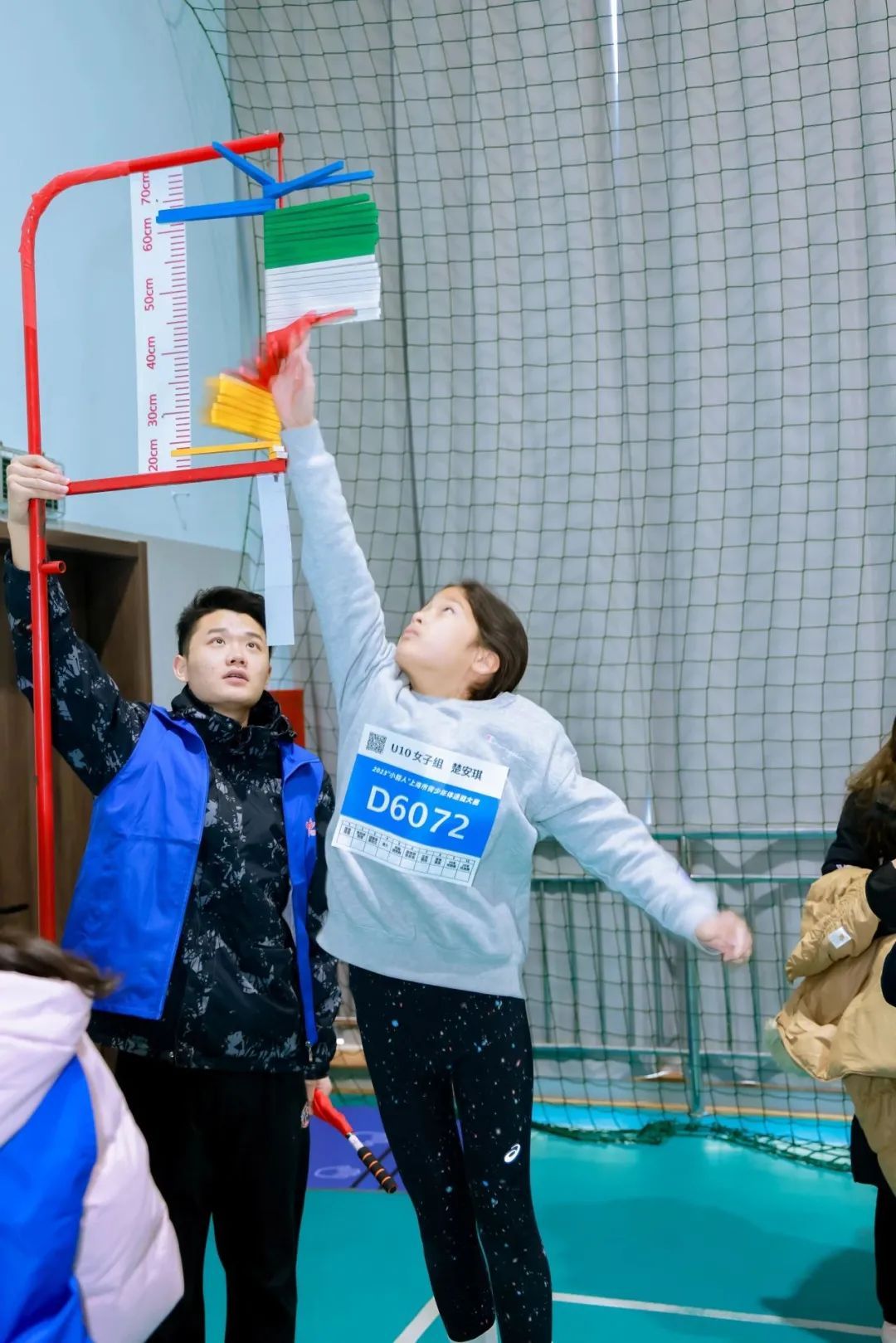 受测者双脚自然分开与肩同宽,站在起跳线后,脚尖不能踩线。冲刺起跳,两臂尽量向上伸展,到达最高点时,用手指的中指触摸刻度的最高点。每位测试者共有2次机会。