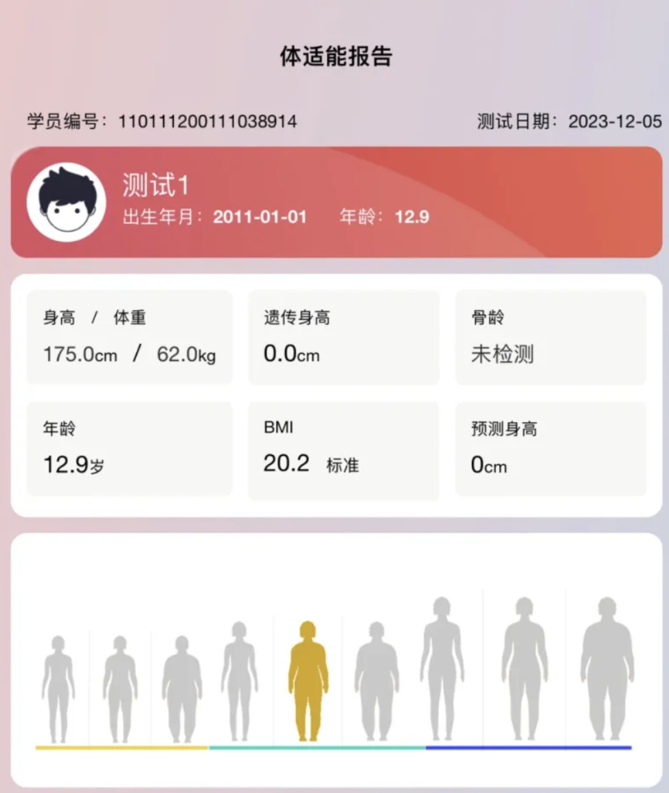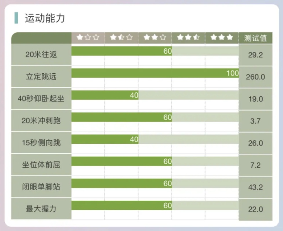 完成所有11项测试项目的小选手们,比赛结束后可以通过官方小程序在线获取体适能报告。(以上为效果图,具体以实际报告为准)