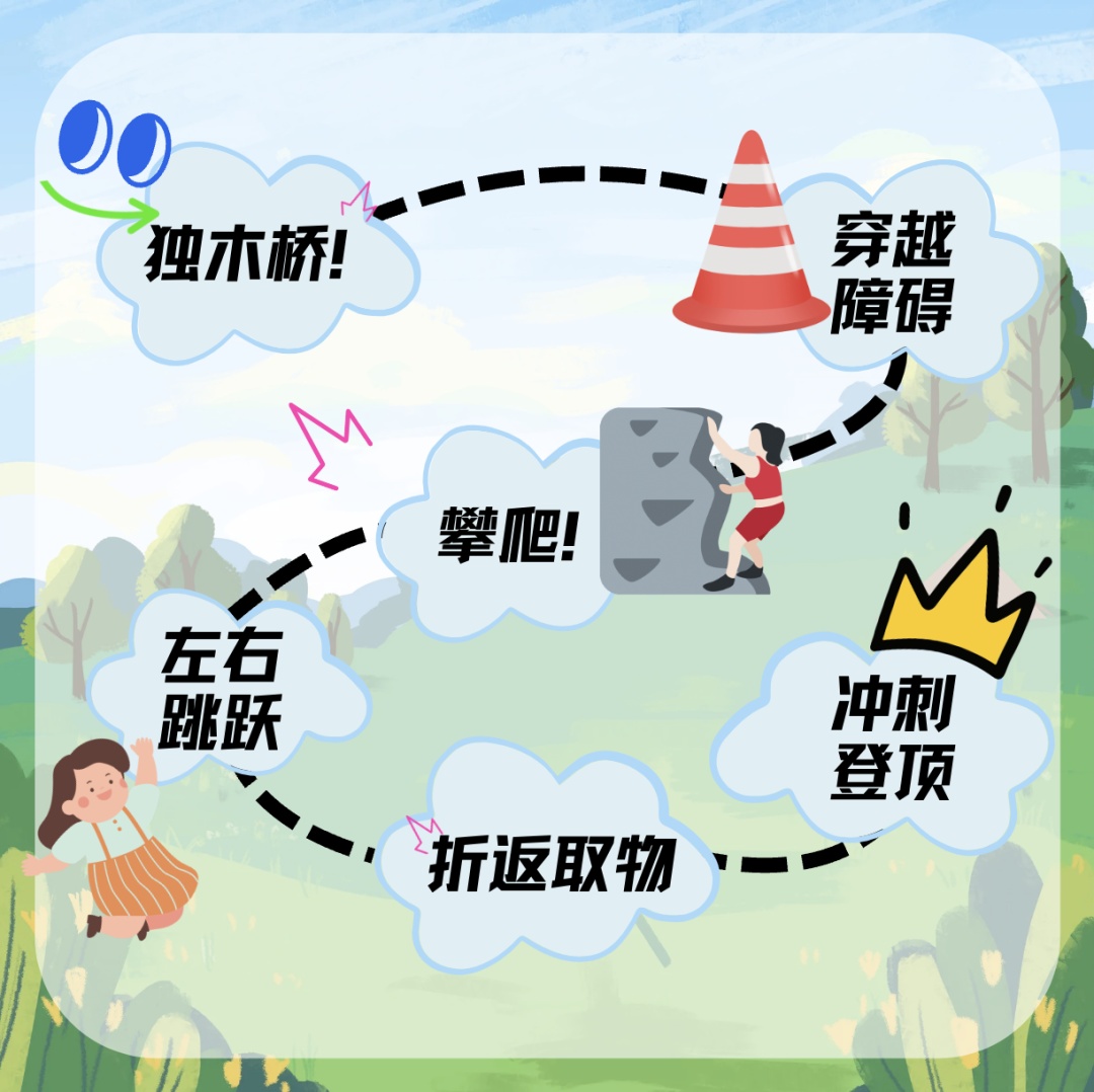 根据平衡、灵敏、速度、耐力等体适能指标,设置相关游戏跑酷关卡,选手由起点统一出发,依次完成各关卡,计算选手抵达终点的时间,按用时多少决出2024年“小能人”体适能大赛综合奖项名次。