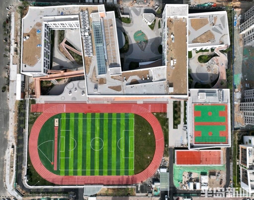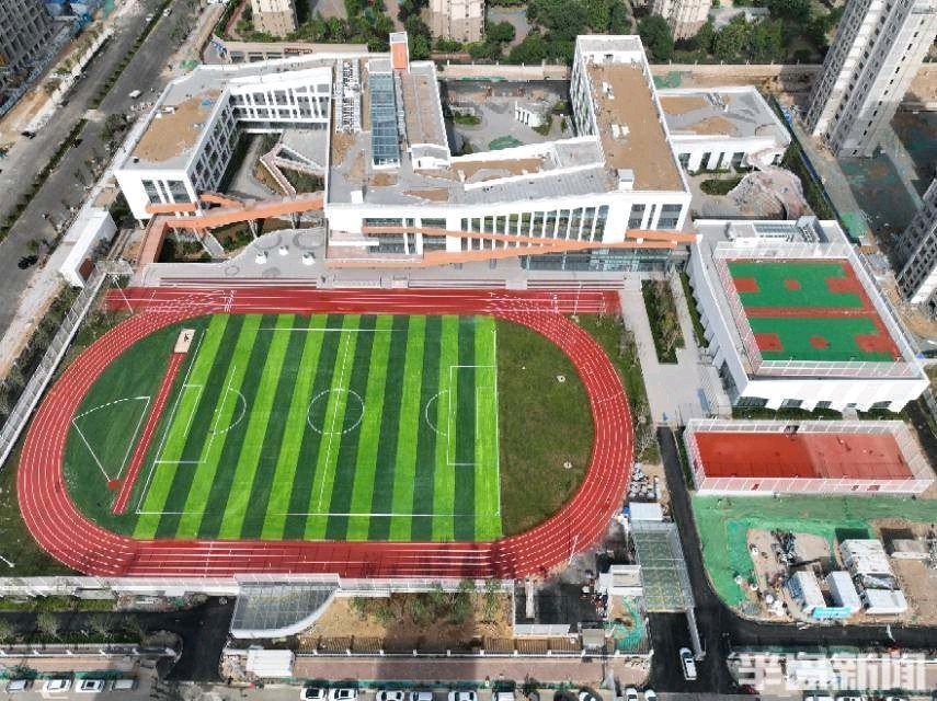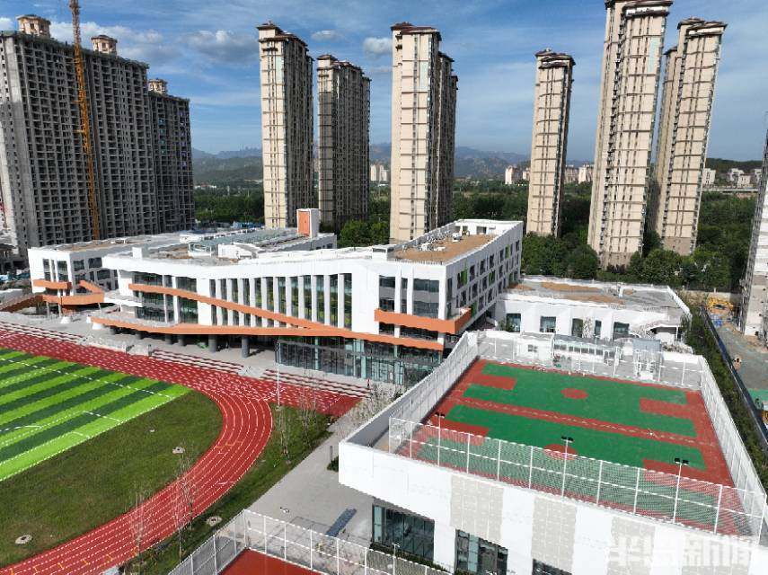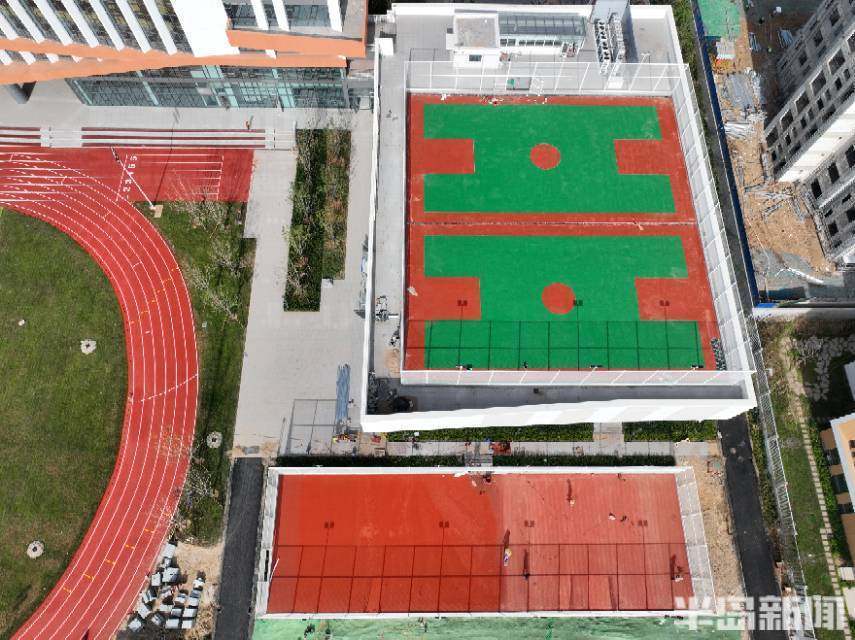 6月30日,在张村河南侧配套初中项目建设现场,施工人员正在进行收尾工作。记者用无人机从高空俯瞰,目前学校主体已经建成,预计今年秋季开学时将投入使用。