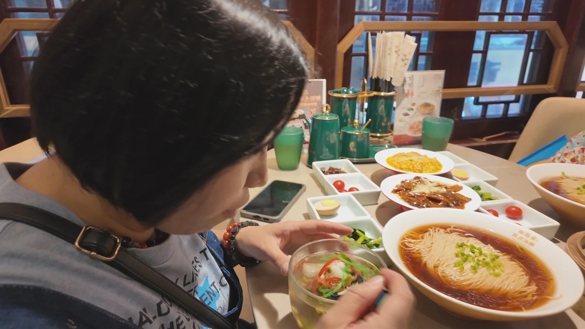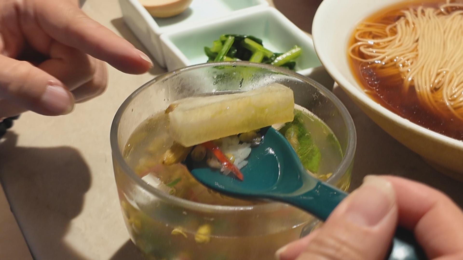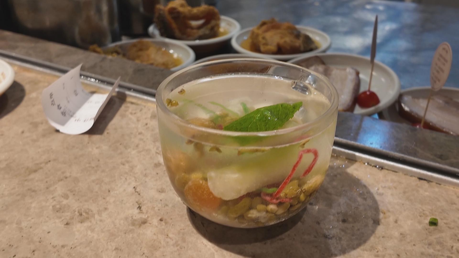 据松鹤楼店员介绍,这款苏式绿豆汤加入了葡萄干、糖冬瓜等多种配料,口感清凉爽口,甜而不腻,非常适合在炎热的天气里饮用。