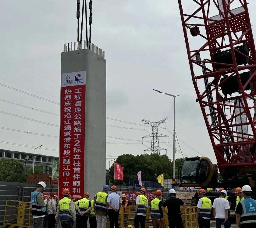 沿江通道浦东段2标首件立柱施工现场图