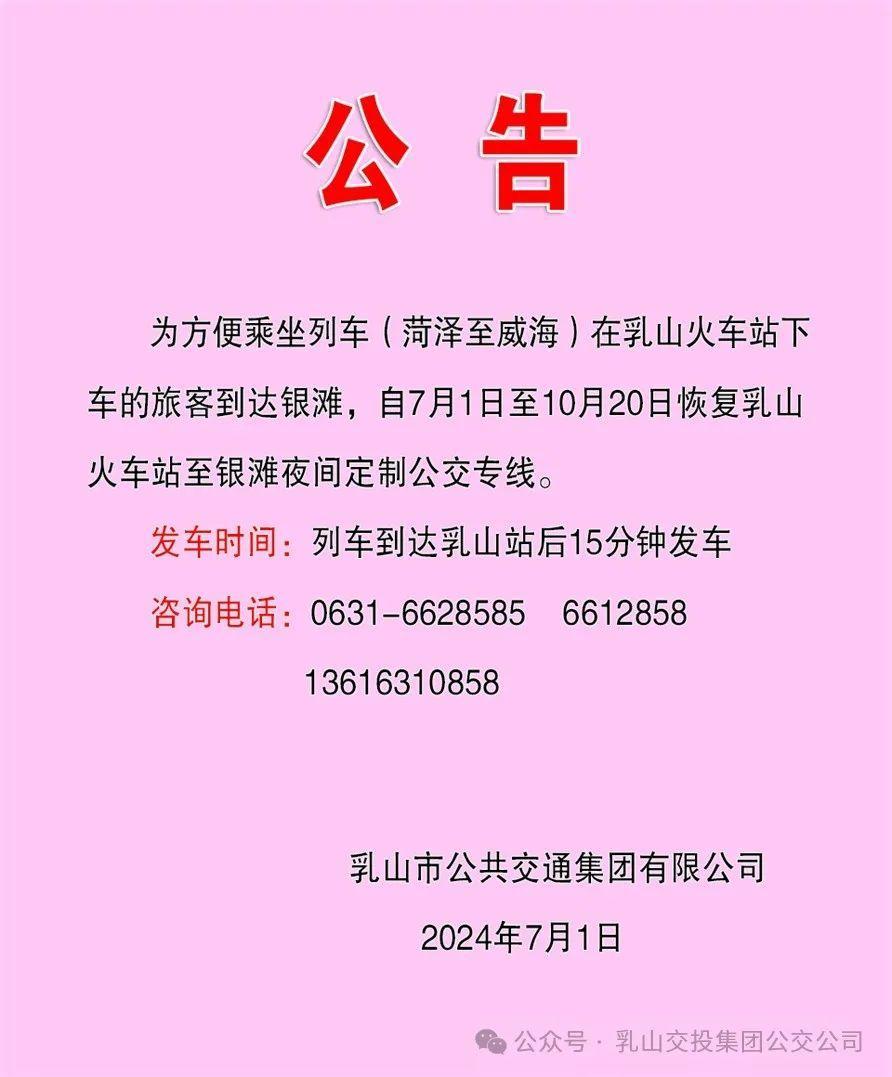 乳山火车站至银滩!夜间定制公交专线恢复
