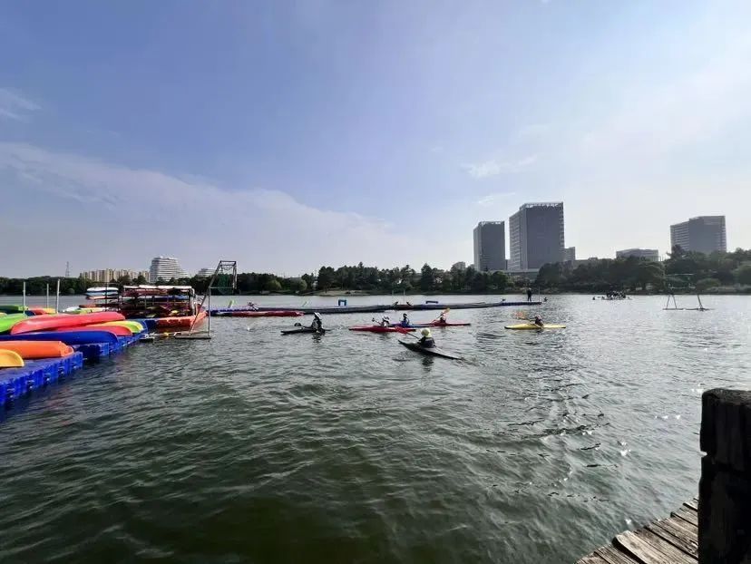美兰湖以纯生态的绿色环境、茂密的森林覆盖率、清新自然的空气被誉为“北上海最美丽的地方”。气温逐渐攀升,凉爽的“水上项目”成了孩子们的“最爱”。美兰湖水上运动娱乐项目一年四季都对市民开放,但是夏天会特别开设暑期课程,除了专业培训,也可以自由玩耍。